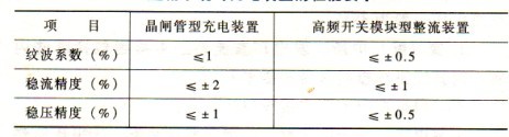 表2-1 直流系統(tǒng)對充電裝置的性能要求